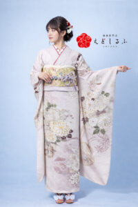 くすみピンクに咲く菊と古典柄|やさしく洗練された華古典振袖【RE788】