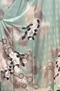 淡いミントグリーンに咲く白椿と梅|大人可憐系フェミニン振袖【RE795】 フェミニン 淡いミントグリーンに咲く白椿と梅|大人可憐系フェミニン振袖【RE795】 緑系 淡いミントグリーンの地色に、白椿や松、梅などが品よく咲き誇る一枚。ゴールドがさりげなく煌めく帯に、紺の帯締めが全体をきゅっと引き締めてくれます。ふんわりと優しい印象の中に、芯のある大人っぽさが光るコーディネートです。繊細な地模様とグラデーションが、動くたびに美しく揺れて写真映えも抜群のフェミニン振袖です。