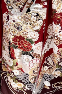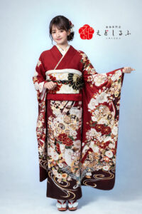 深紅に咲く白金の花々|吉祥文様が門出を彩る王道華やか古典振袖【RE769】 古 典 深紅に咲く白金の花々|吉祥文様が門出を彩る王道華やか古典振袖【RE769】 赤系 深みのある赤に、白や金の花々が咲き誇る華やかな一枚。牡丹や桜、貝桶、御所車などの吉祥文様が、成人式の門出を華やかに彩ります。黒と金を効かせた帯で、上品さの中に凛とした存在感をプラス。古典の美しさと今っぽさを併せ持ち、世代を超えて愛される王道コーデです。