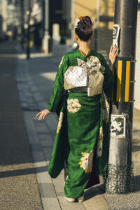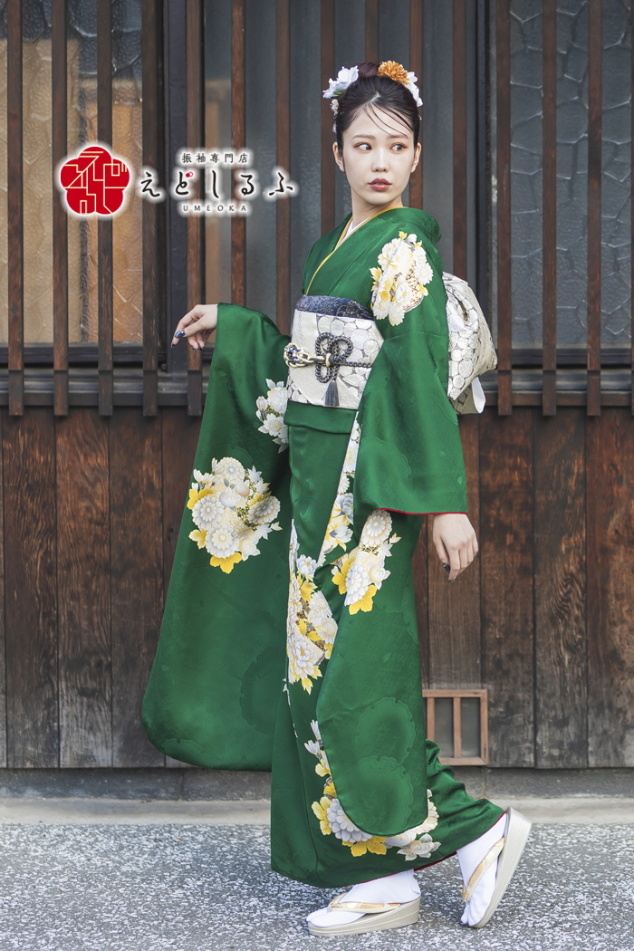 深緑に映える白金の花|気品漂う大人ヴィンテージ振袖【RE581】 ヴィンテージ 深緑に映える白金の花|気品漂う大人ヴィンテージ振袖【RE581】 緑系 深みのある緑地が印象的な、気品漂うヴィンテージ振袖。白と金を基調とした花意匠が映え、洗練された華やかさを演出します。落ち着きの中に個性が光る、上質感あふれる配色バランス。伝統美とモダンな感性を融合させたデザインが、凛とした大人の存在感を叶えます。