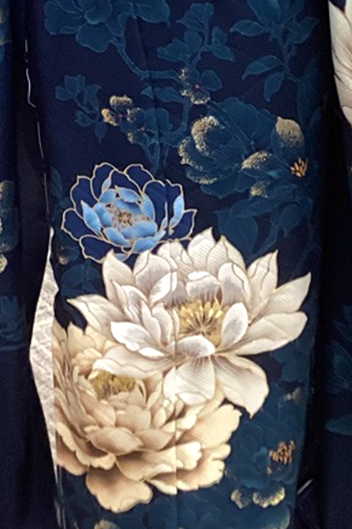濃紺に咲く牡丹と蓮|大人の品格とトレンド感を纏うレトロ古典振袖【RE772】 レトロ古典 濃紺に咲く牡丹と蓮|大人の品格とトレンド感を纏うレトロ古典振袖【RE772】 青系 高貴な印象を与える濃紺地に、大胆かつ繊細に描かれた大輪の牡丹と蓮が咲き誇る一枚。ベージュ〜ゴールドトーンで統一された花々が、洗練された美しさと大人の品格を引き立てます。立体感のある金糸の帯を合わせることで、華やかさも格段にアップ。落ち着いた色味の中にも、今っぽさとトレンド感をしっかり取り入れた「大人映え」スタイルを楽しめます。 成人式はもちろん、前撮り写真でも圧倒的な存在感を放つ、ワンランク上の“カッコいい系”レトロ古典振袖です。