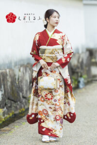 赤と生成りが織りなす格調美|優雅に華やぐ王道古典振袖【RE649】 古 典 赤と生成りが織りなす格調美|優雅に華やぐ王道古典振袖【RE649】 赤系 あたたかみのある赤と生成りが調和する、格調高い古典振袖。古典柄に重なる花々が、優雅で華やかな印象を描き出します。金彩のアクセントが全体を引き締め、上質な輝きを演出。伝統美を大切にしながらも、軽やかな気品を感じさせる意匠。晴れの日を端正に彩る、王道の一着です。