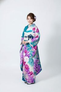 RE183 クール RE183 青系 深みのあるターコイズブルーに、大輪の牡丹が咲き誇る華やかな振袖。白と紫、ピンクのグラデーションで描かれた牡丹が立体感を演出し、優雅でゴージャスな印象に仕上がっています。ベースの色合いはクールながら、花柄の瑞々しさが加わり、クールビューティーにもフェミニンにも着こなせるデザイン。 フルセットレンタル 250,000円(税込) ※掲載コーディネートの袋帯・その他小物は非売品を含むオプション品(要別途料金)を使用しています。