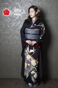 漆黒に咲く繊細な花|大人の品格と強さを纏うヴィンテージ振袖【RE444】 ヴィンテージ 漆黒に咲く繊細な花|大人の品格と強さを纏うヴィンテージ振袖【RE444】 黒系 深みのある黒地に、繊細に描かれた花々が美しく咲くヴィンテージ振袖。控えめながらもしっかりと個性を放つデザインで、大人の女性らしい上品さと芯の強さを表現しています。すっきりとした柄配置がモダンな印象を与え、レトロな趣きと今っぽさが絶妙にミックス。しっとりと落ち着いたコーディネートを好む方や、自分らしい美しさを大切にしたい方にぴったりの一着です✨