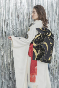 アイボリーに映える黒×金の梅|都会的でかっこいいモダンギャル振袖【RE531】 ギャル アイボリーに映える黒×金の梅|都会的でかっこいいモダンギャル振袖【RE531】 白系黒系 アイボリー地に黒と金の梅が大胆に描かれた、印象的な振袖。シンプルでありながら華やかさを持ち、都会的な雰囲気をまといます。アクセントに小物で赤を合わせることで、洗練された中にも女性らしい華やぎをプラス。モダンでかっこいいギャルスタイルを目指したい方にぴったりの一着です。