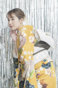 鮮やかイエローに咲く大輪花|洗練された大人ギャル振袖【RE591】