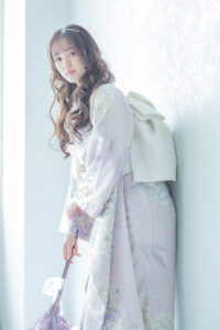 淡いラベンダーに咲く大輪花|上品に大人可憐さを纏う振袖【RE558】