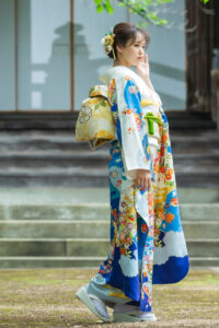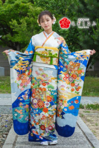 鮮やかな白×青に映える吉祥文様|伝統美と色彩の華やぎ古典振袖【RE553】 古 典 鮮やかな白×青に映える吉祥文様|伝統美と色彩の華やぎ古典振袖【RE553】 白系青系 白地に鮮やかな青や赤を重ねた、多彩な古典文様が印象的な華やぎの振袖。花車や菊、松竹梅など吉祥モチーフが豪華に描かれ、明るく晴れやかな雰囲気を演出します。伝統美と色彩の豊かさが際立つ、格式高く華やかな一枚です。