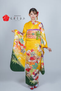 黄色に咲く古典花柄|明るく可愛さが際立つ華やか振袖【RE365】