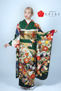 グリーンに映える熨斗と花|凛とした上品さが際立つ王道古典振袖【RE620】 古 典 グリーンに映える熨斗と花|凛とした上品さが際立つ王道古典振袖【RE620】 緑系 深みのあるグリーン地に、赤や金が映える王道の古典振袖。 流れるような熨斗柄と満開の花々が目を引く一枚です。 上品さのなかに芯のある強さを感じさせる、クラシカルで凛とした装いを目指す方にぴったり。 清楚な雰囲気に、さりげない大人っぽさと個性をプラスしたい方におすすめです。