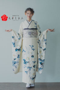 白地に映える青の椿柄|透明感と上品さを兼ね備えた振袖【RE638】 クール 白地に映える青の椿柄|透明感と上品さを兼ね備えた振袖【RE638】 白系 透明感あふれる白地に、椿の花が凛と咲く一着。まるで雪のように澄んだ白と、落ち着きのある青のコントラストが、可憐で清楚なムードを引き立ててくれます。柄の位置も上品で、すっきりとしたシルエットに見せてくれるのもポイント。甘くなりすぎず、でも女の子らしい雰囲気はしっかりキープ。“今っぽい可愛さ”と“上品さ”を両立したい方におすすめの振袖です。