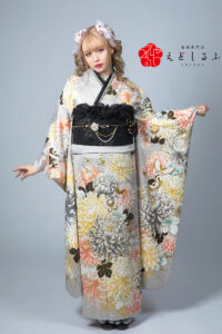 グレーに咲く菊柄クラシカル|地雷×ガーリーな甘辛ミックス振袖【RE664】