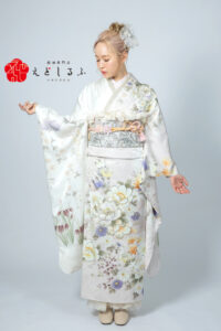 白地に咲く淡色フェミニン花柄|透明感あふれる上品振袖【RE750】 キュート 白地に咲く淡色フェミニン花柄|透明感あふれる上品振袖【RE750】 ピンク やわらかな白地に優しいピンクやラベンダーの花々が広がる、上品フェミニンな振袖。繊細な色使いと淡いグラデーションが、大人っぽさの中に可憐さを添えてくれます。軽やかなニュアンスカラーでまとめられているので、透明感のある雰囲気を演出したい方にぴったり。また裾からのぞくレースとブーツの組み合わせが、この振袖の特別感をぐっと引き立るポイントに。