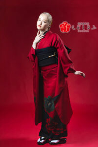 真紅に咲くヴィンテージ花柄|クラシカルで凛とした振袖【RE721】 クール 真紅に咲くヴィンテージ花柄|クラシカルで凛とした振袖【RE721】 赤系 真紅の地に浮かぶ、大きな花模様がドラマチック。 だけど、どこかクラシカルで上品な可愛さもあって… 凛とした赤が主役のコーディネートは、周りと差がつくヴィンテージスタイル。