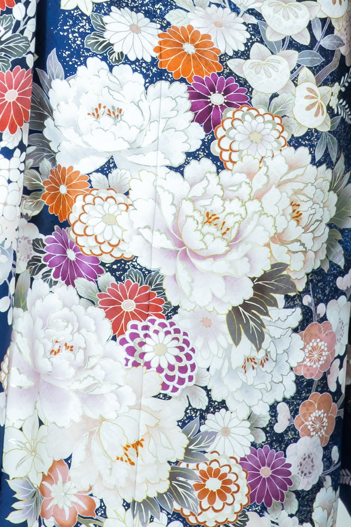 RE738 古 典 RE738 青系 【華やか×上品】ネイビーの華古典振袖 深みのある紺地に、咲き誇る牡丹や菊、桜が織りなす多幸感たっぷりの古典美。 くすみピンクや白を交えた配色が、大人っぽくも可憐な印象をプラスしてくれます。 「きちんと感」はほしいけど、自分らしさもしっかり出したい—— そんなあなたにぴったりの一枚です。 フルセットレンタル 250,000円(税込) ※掲載コーディネートの袋帯・その他小物は非売品を含むオプション品(要別途料金)を使用しています。